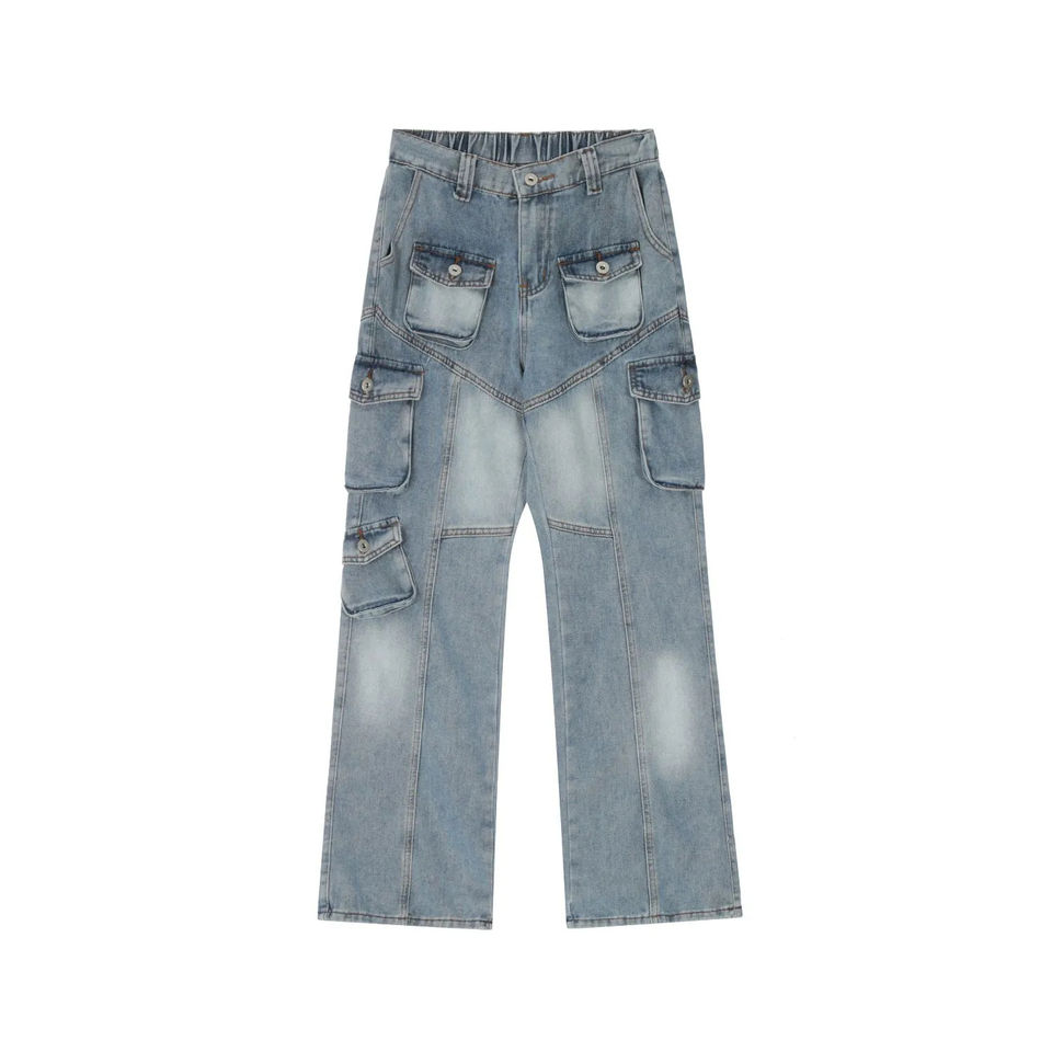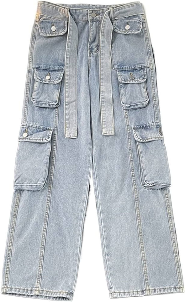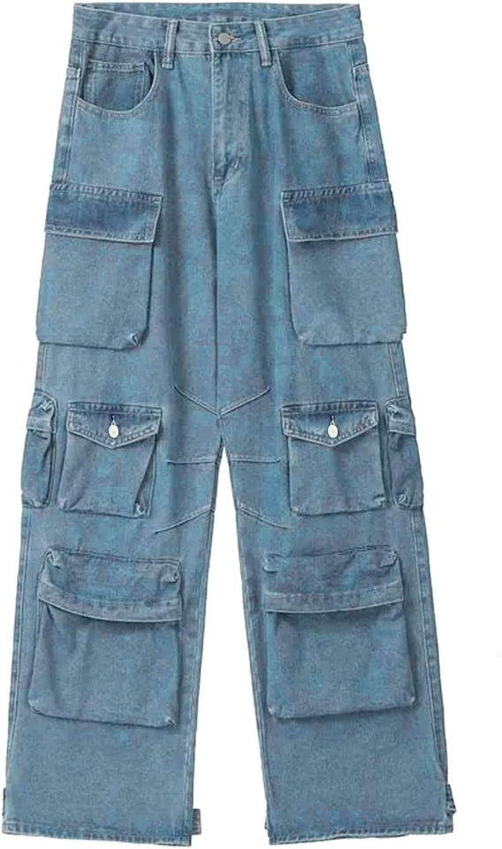 Pantalon cargo en jean 100 % coton délavé effet soleil, motif uni, respirant, style décontracté, plusieurs poches
