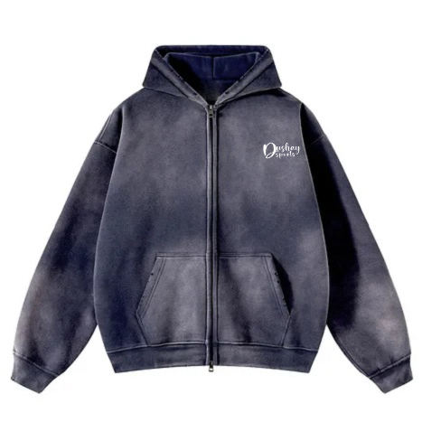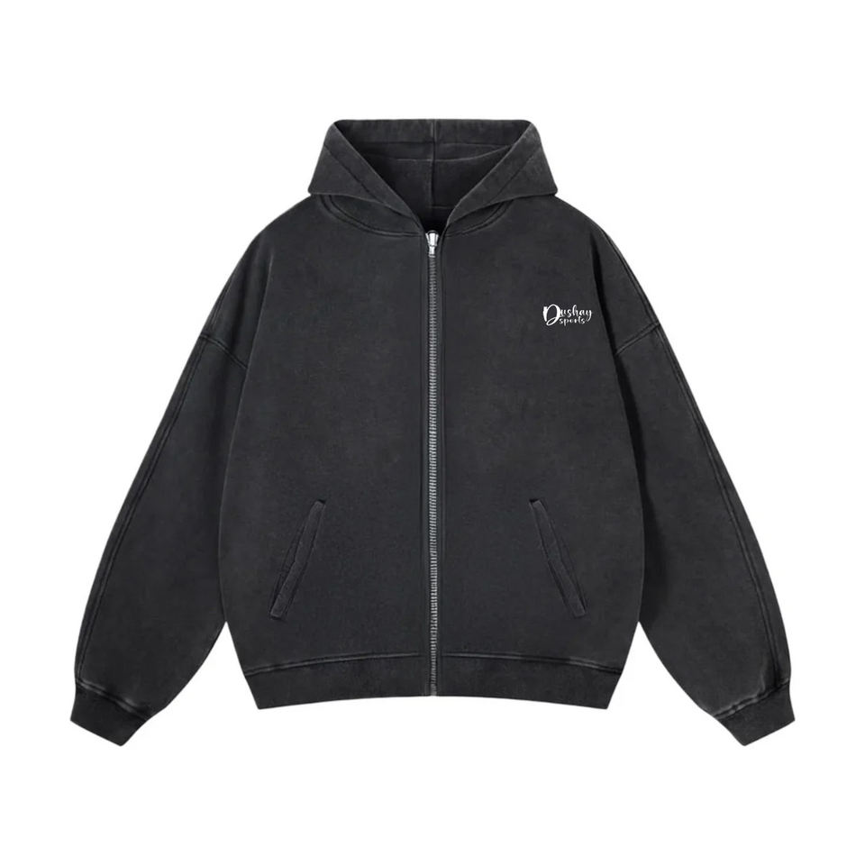 Personnalisé Soleil Faded Zipper French Terry Fonctionnel Acide Lavage 500gsm Hommes Zip up Rivet Heavyweight Hoodie pour Hommes