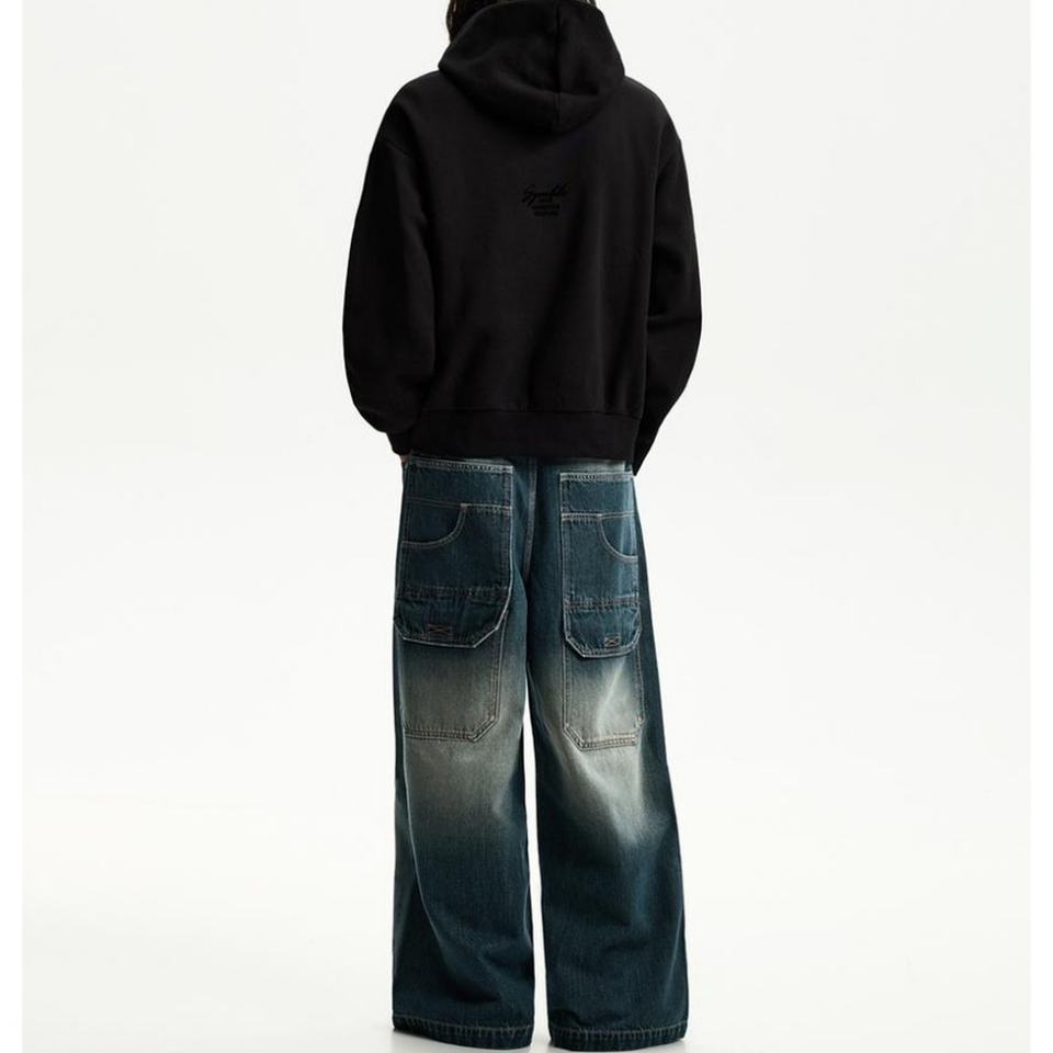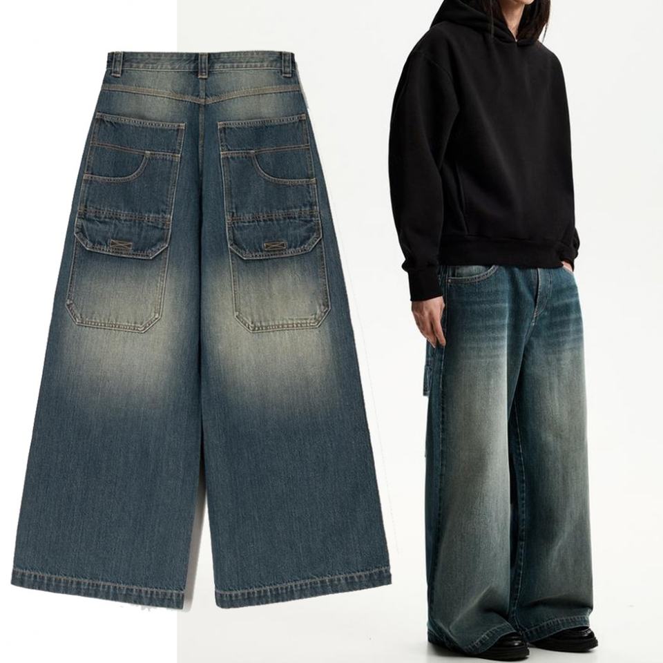 Jean cargo bleu délavé surdimensionné à jambes larges et amples, style skater, avec plusieurs poches, pour homme