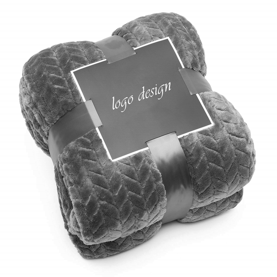 Nom du produit:Personnalisé Super Doux Gris Foncé Feuilles Motif Flanelle Couverture De Lit En Molleton