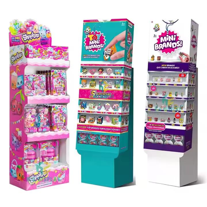 Supermarché personnalisé Voiture jouet Présentoir en carton Présentoir Figure Poupée Présentoir Tumbler Puzzle Présentoir en carton pour magasin