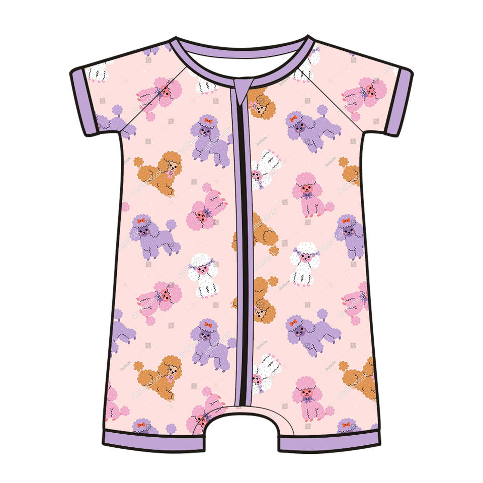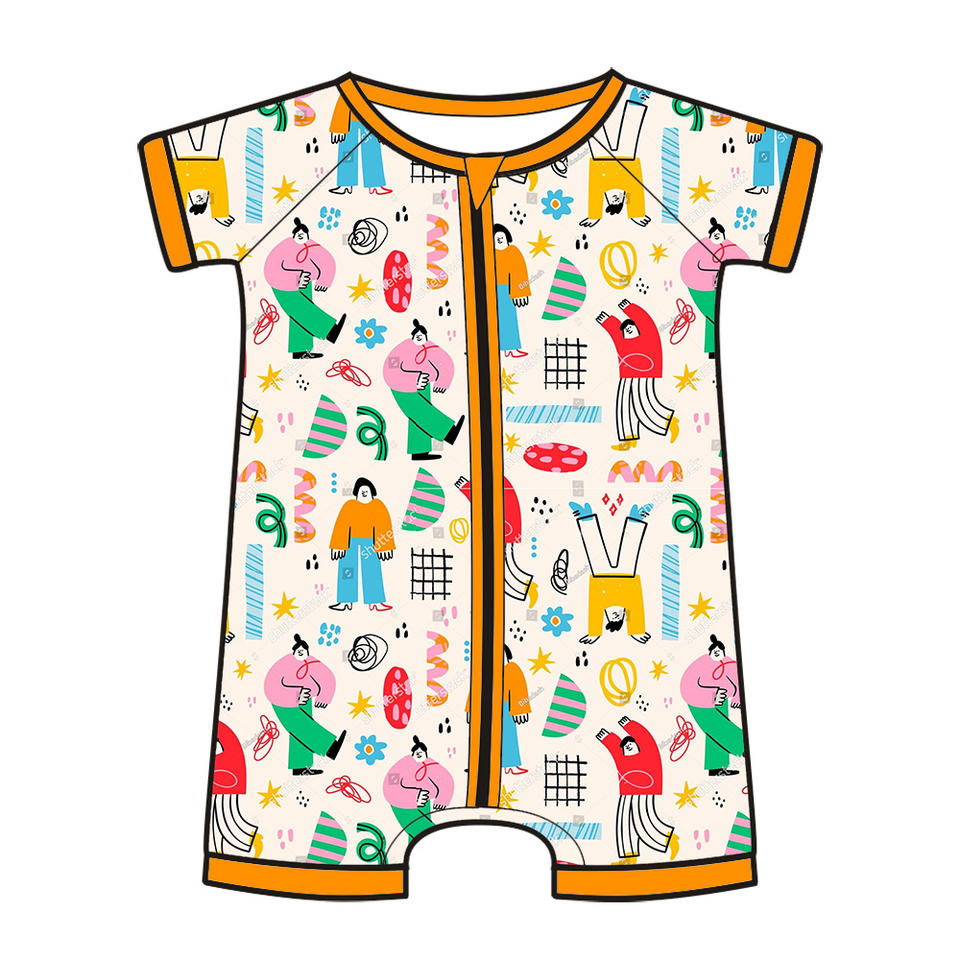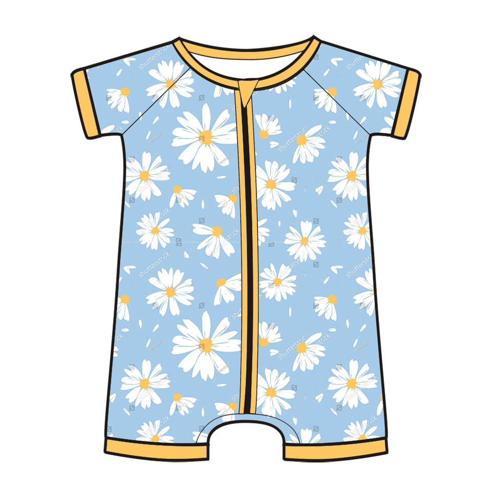 Custom Surfing Beach Pattern Infant Jumpsuits Clothes Pyjamas Organic Bamboo Viscose Baby Short Sleeve Rompers Girls Pajamas