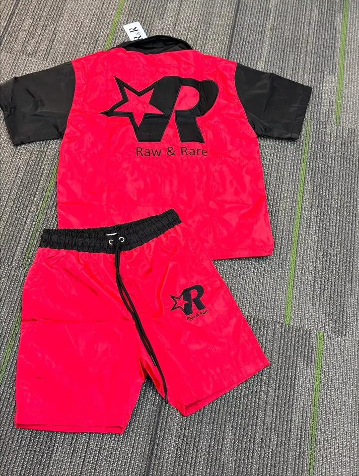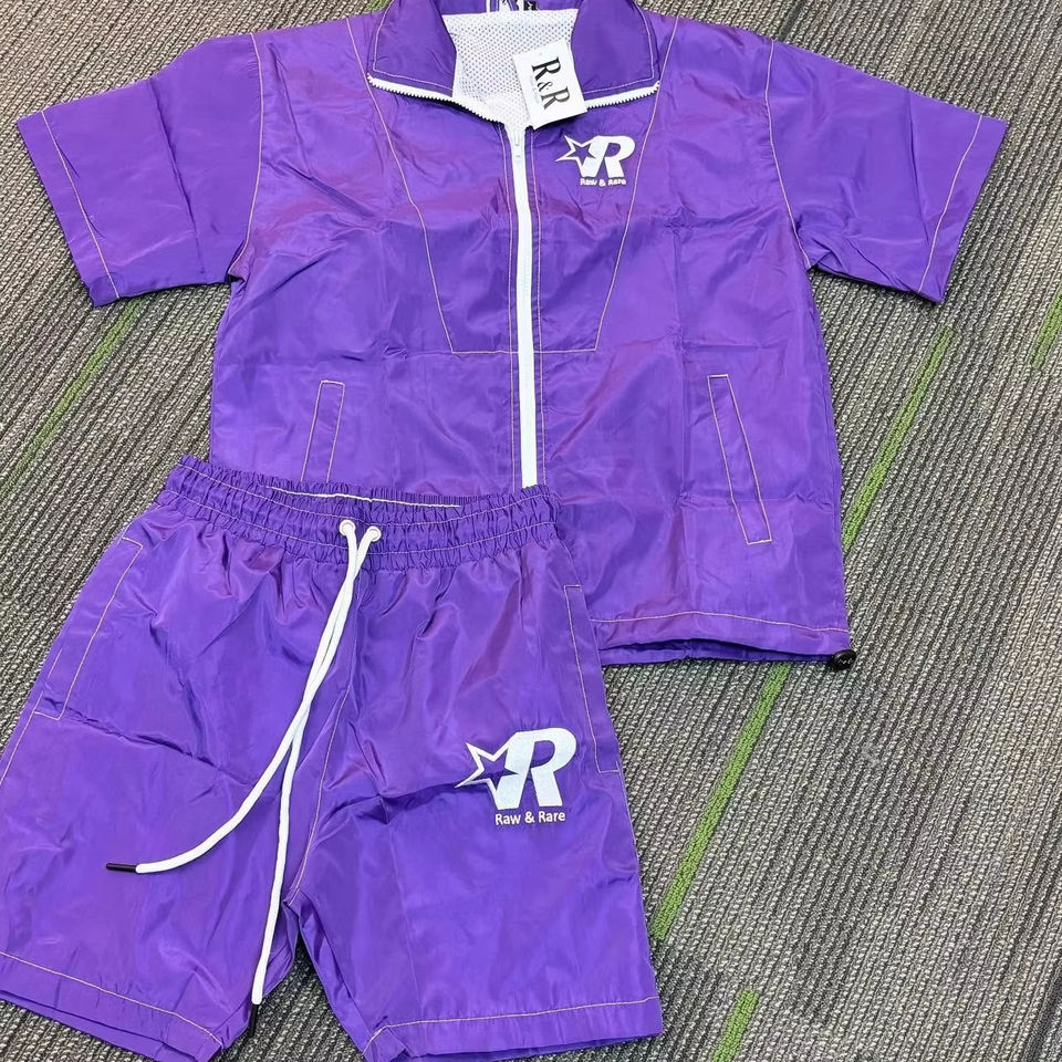 Ensemble de survêtement court personnalisé en deux pièces pour homme, veste coupe-vent en nylon et pantalon en polyester patchwork
