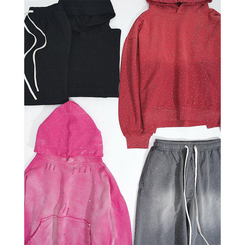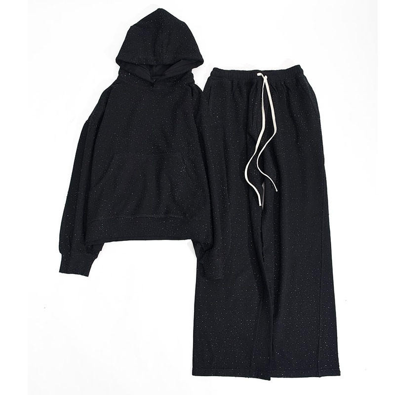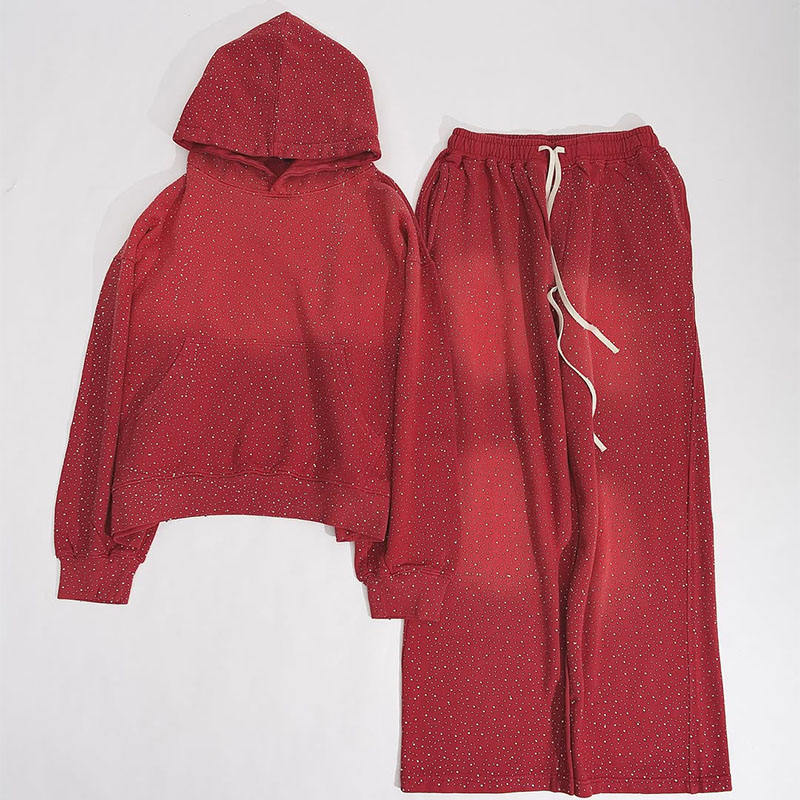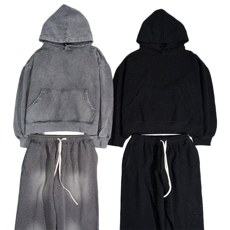Combinaisons de survêtement personnalisées Survêtements unisexes avec strass et paillettes pour hommes Ensemble 2 pièces coupe ample