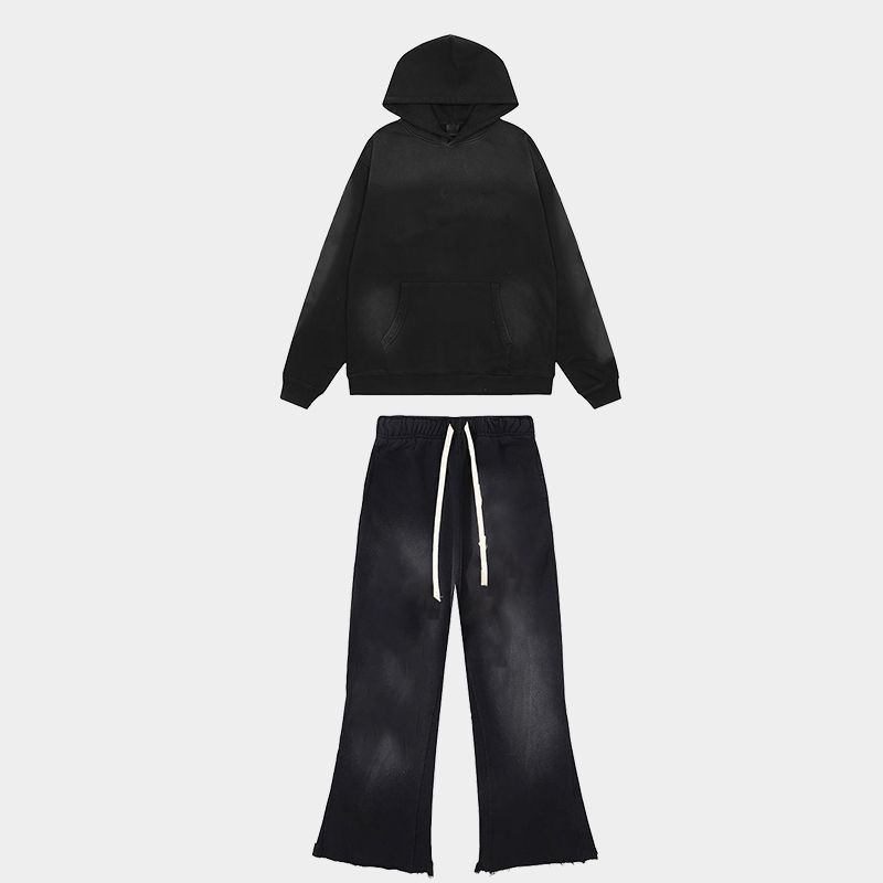 Survêtement personnalisé Survêtement deux pièces délavé à l'acide pour hommes Streetwear Distressed Cut Sew Sun Faded Hoodie et ensemble de pantalons de survêtement
