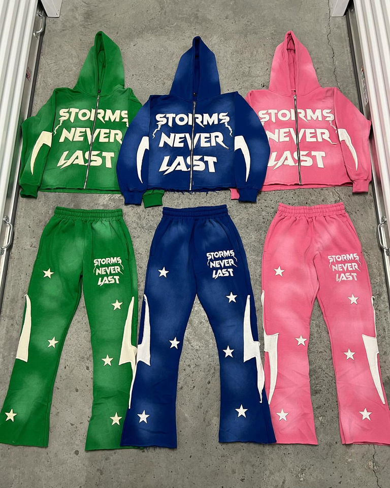 Combinaisons de survêtement personnalisées Combinaisons de survêtement lavées à l'acide Ensemble de fermeture éclair Pantalons de survêtement évasés et sweat à capuche Distressed Patch Survêtement pour hommes