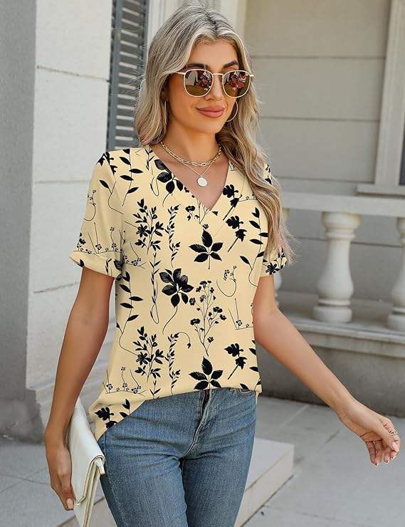T-shirts personnalisés pour femmes à manches courtes col en V T-shirts coupe ample léger doux décontracté été printemps T-shirts hauts