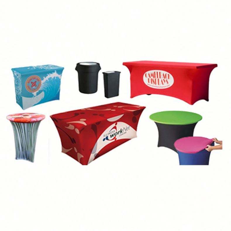 Housse de table personnalisée avec logo d'entreprise, nappe extensible personnalisée en spandex, personnalisation avec logo pour fête d'anniversaire