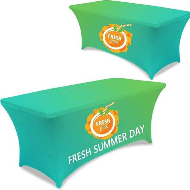 Housse de table personnalisée 4ft 5ft 6ft 8ft en spandex extensible, nappe personnalisée avec logo d'entreprise, mariages, événements, salons professionnels