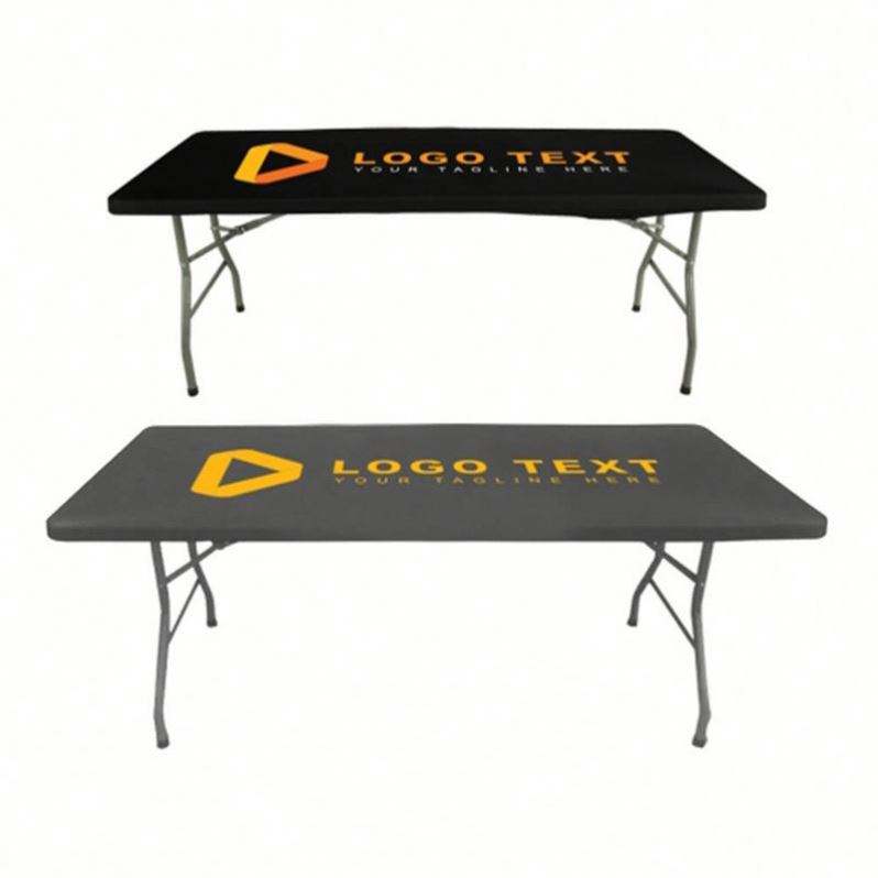 Housse de table personnalisée 4ft 5ft 6ft 8ft en spandex extensible, nappe personnalisée avec logo d'entreprise, mariages, événements, salons professionnels