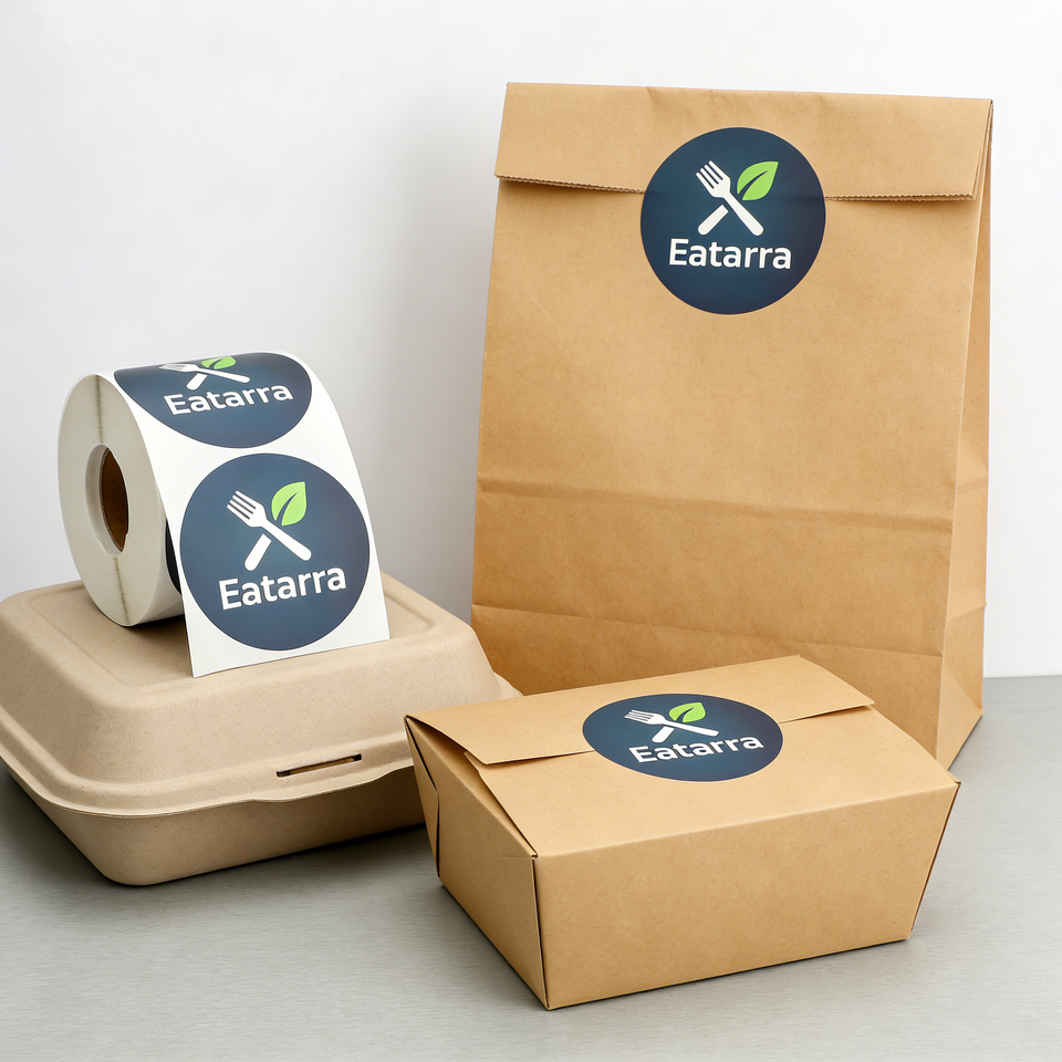 Service d'impression d'étiquettes personnalisées pour emballages alimentaires à emporter, autocollants ronds imperméables avec logo pour emballages de plats à emporter des restaurants