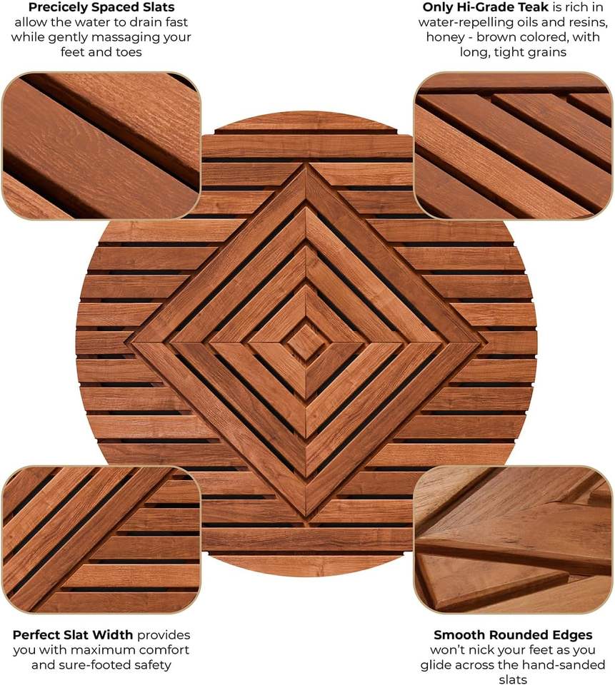 Tapis de bain en teck personnalisé et tapis de douche en bambou - Tapis de salle de bain en bois antidérapants et imperméables pour spa, sauna, camping-car et bord de piscine