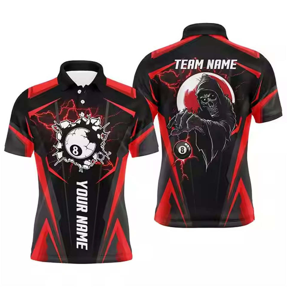 Chemises de club de billard pour hommes à manches courtes, respirantes, en tricot uni, avec impression numérique des numéros et logo d'équipe personnalisés, en vente