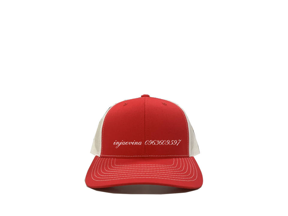 Casquette de baseball rouge personnalisée avec logo d'équipe, dos en maille blanche, 5 panneaux, couleur contrastante, pour uniforme de personnel d'événements extérieurs
