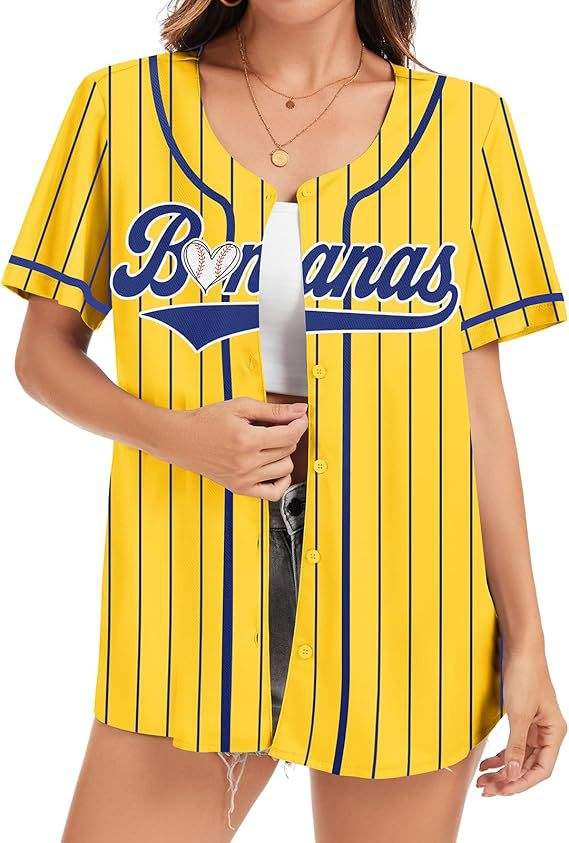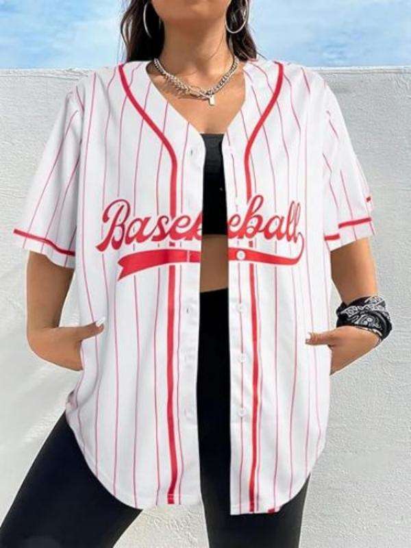Maillot de baseball surdimensionné rayé à boutons pour femme, grande taille, avec logo et numéro personnalisés, style hip-hop