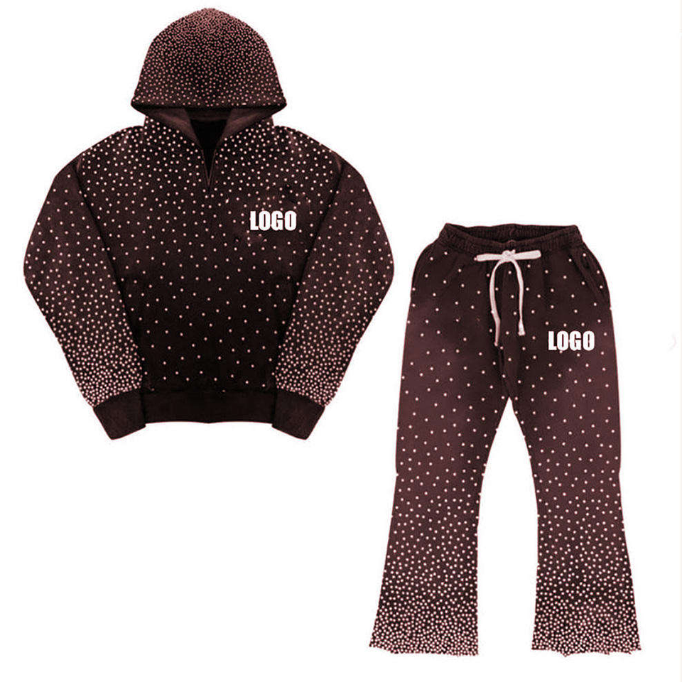 Sweat-shirt en molleton Tech personnalisé pour hommes Jogger en 100% coton avec capuche surdimensionnée et strass pour l'hiver