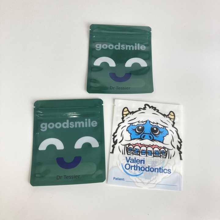 Sachets d'emballage personnalisés pour aligneurs dentaires, scellés sur trois côtés, refermables, réutilisables, avec fermeture éclair