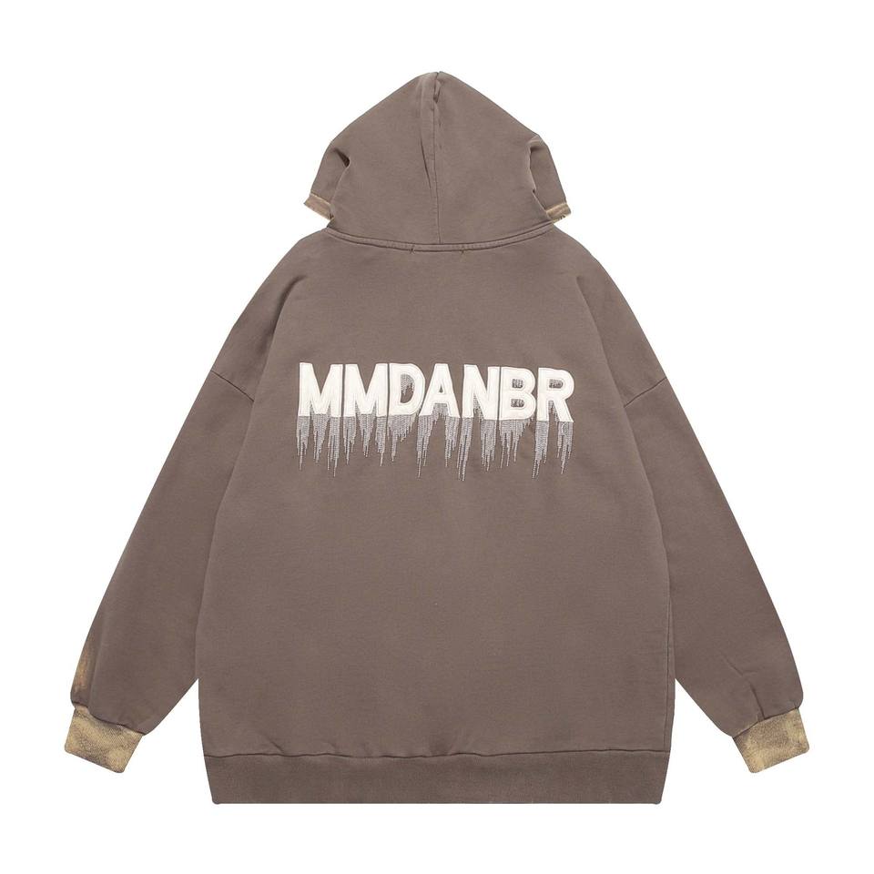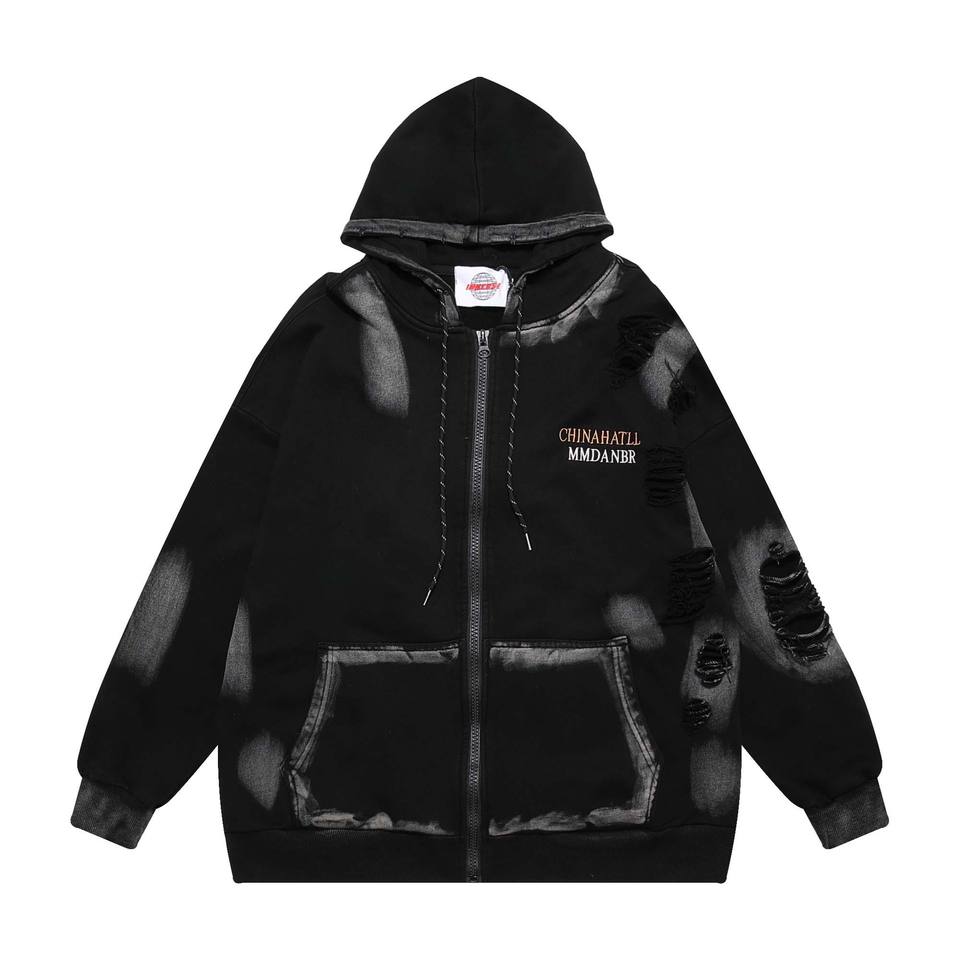 Sweat à capuche pour homme en coton éponge personnalisé délavé au soleil de haute qualité glands lourds en détresse Vintage délavé à l'acide fermeture éclair en détresse broderie PU