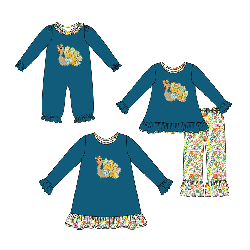 Barboteuse décontractée pour bambins avec imprimé de fleurs de dinde pour Thanksgiving personnalisée vente en gros de tenues pour enfants pour filles robe soeur assortie pour bébé