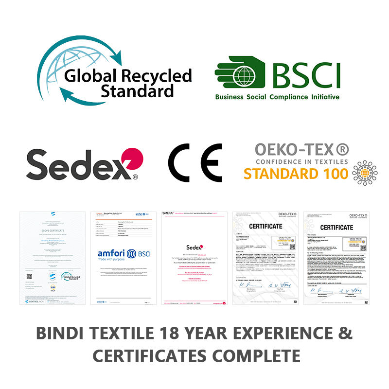 Certification:GRS / BSCI / CE/ OEKO-TEX STANDARD 100