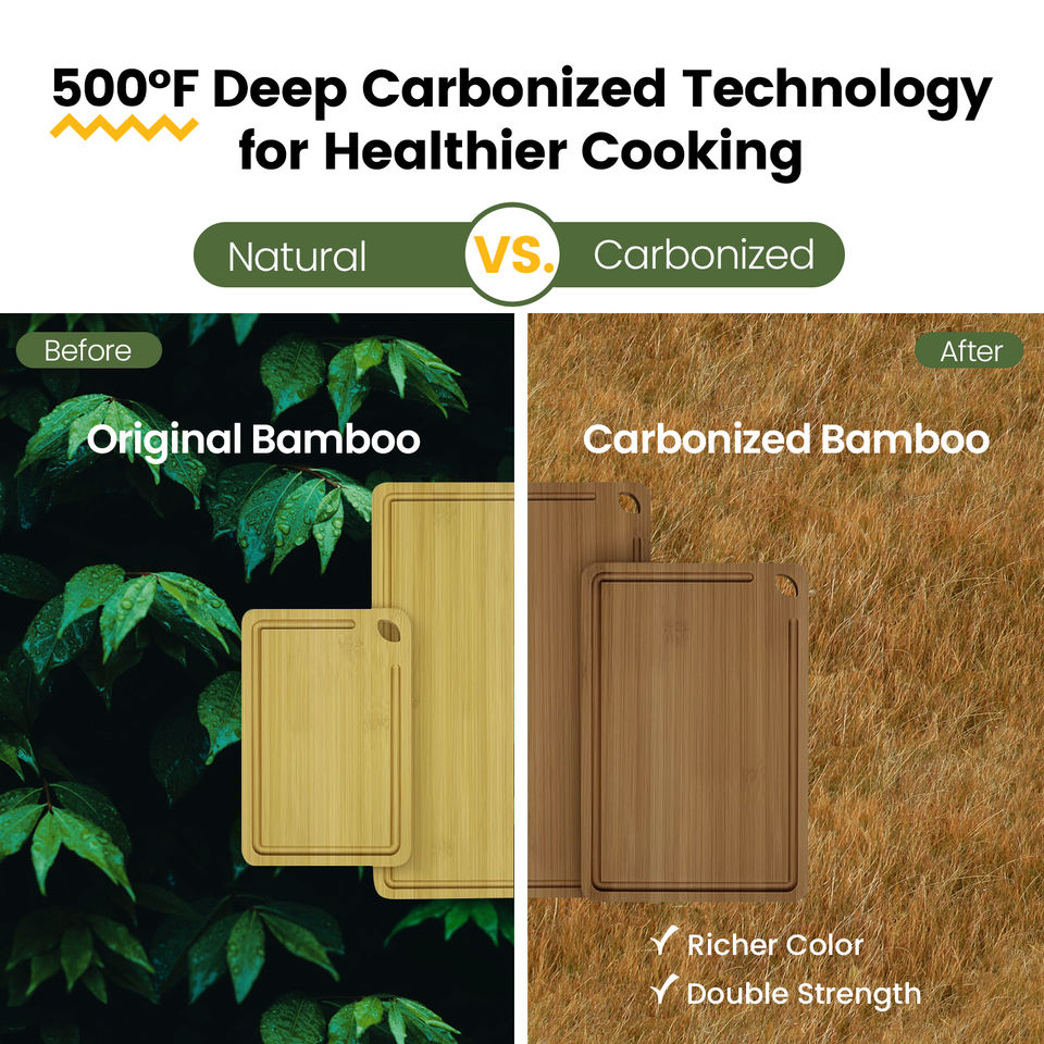 Planche à charcuterie personnalisée en bambou carbonisé épaisse de 2,5 cm avec surface huilée, logo gravé au laser, avec poignée, facile à nettoyer et durable