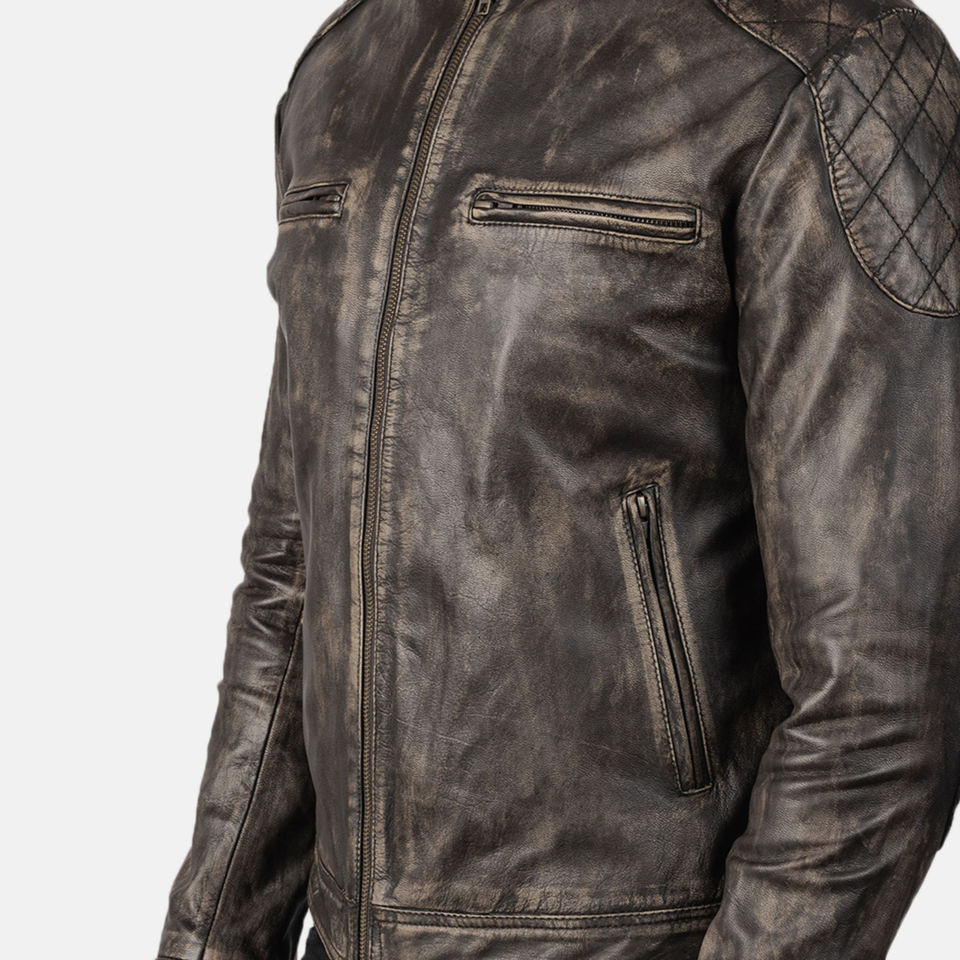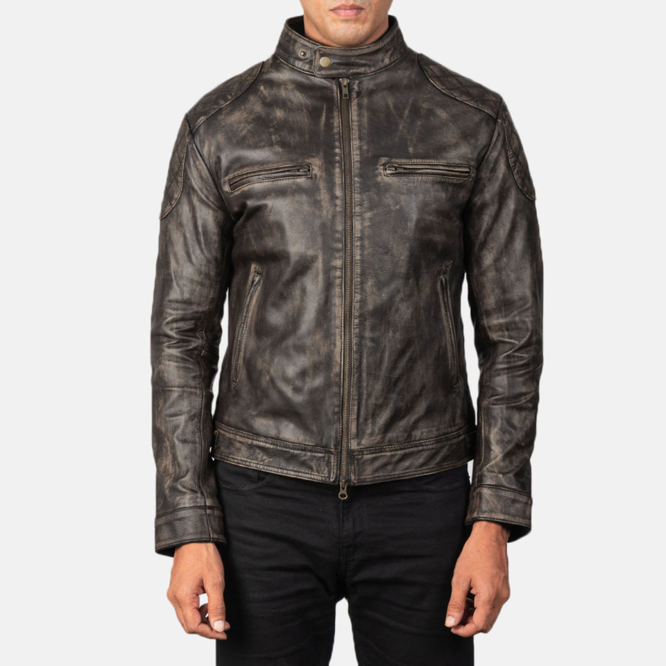 Blouson Biker Homme Personnalisé en Cuir Véritable Effet Vieilli Style Urbain Hiver Enduit Respirant Coupe-Vent