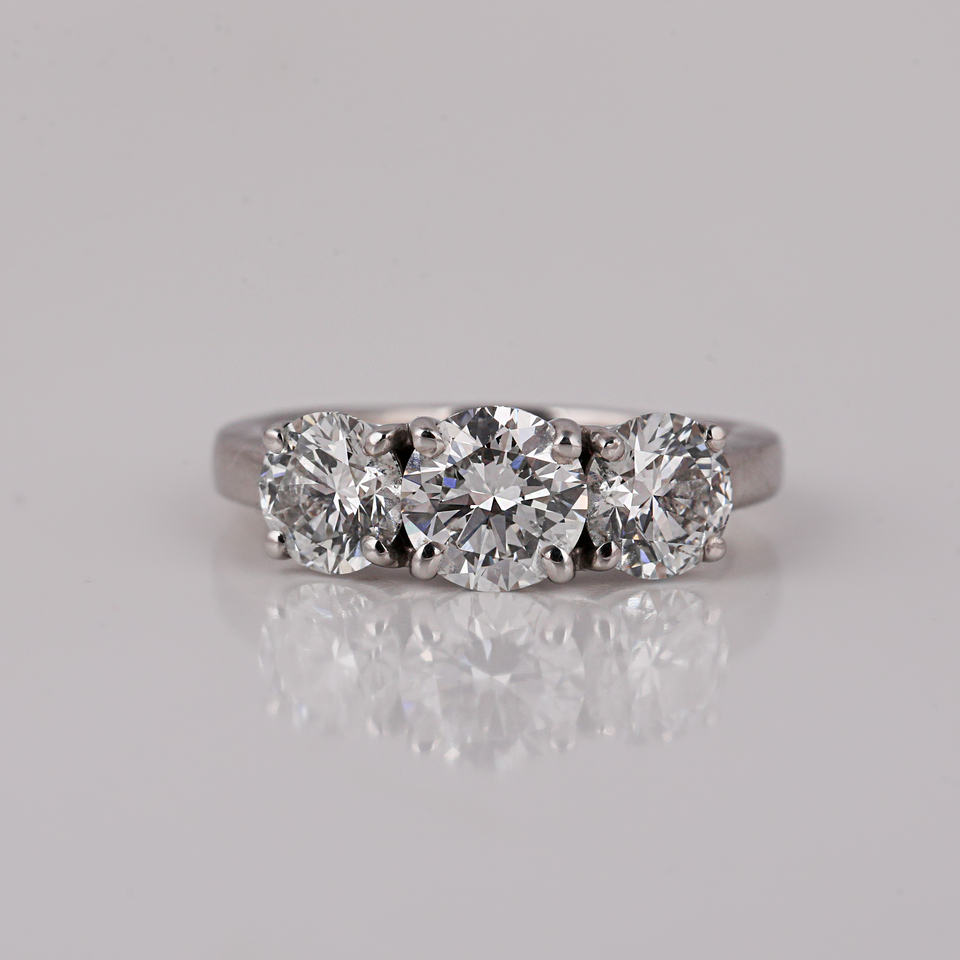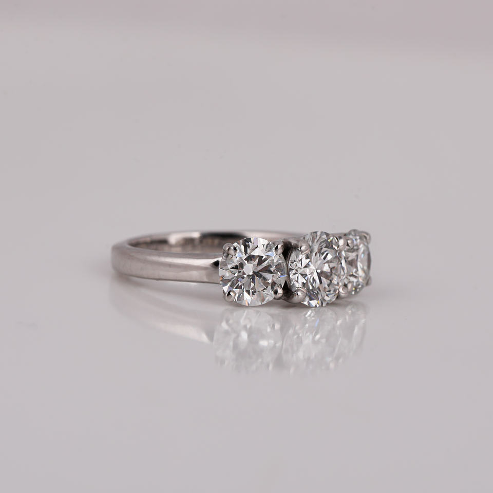 Bague de fiançailles personnalisée à trois pierres, diamant rond de laboratoire, argent sterling plaqué or, cadeau luxueux pour un anniversaire