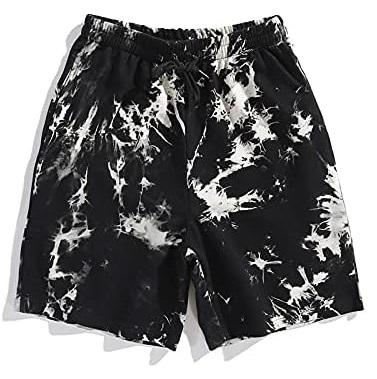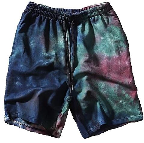 Shorts de jogging pour homme en molleton bouclette respirant, teint sur mesure par immersion (tie-dye) et par trempage (dip-dye), avec cordon de serrage, effet délavé à l'acide et bords bruts, style vintage.