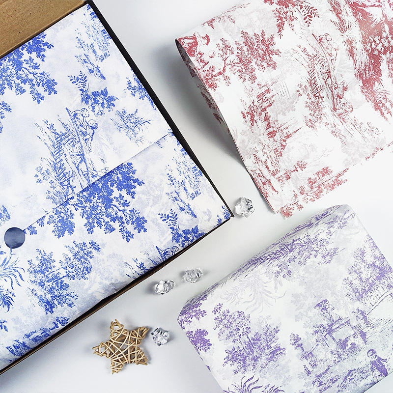 Papier de soie personnalisé imprimé avec des motifs et un logo conçus sur mesure pour des solutions d'emballage professionnelles