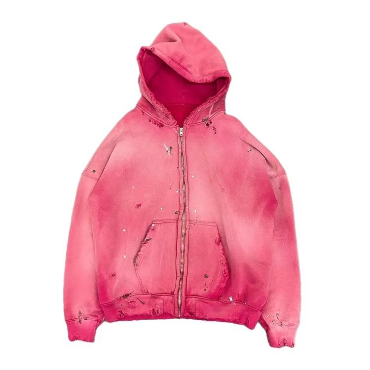 Personnalisé Top Qualité Couleurs Solides Hommes recadrée Fermeture Éclair À Capuche Poids Lourd Lavage À L'acide Soleil Délavé Distressed Pull Sweat Hiver