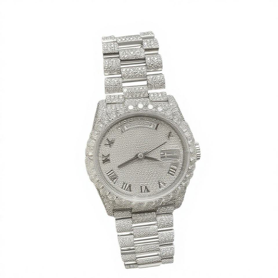 Montre à quartz en acier inoxydable de luxe personnalisée, best-seller, sertie de moissanite VVS et d'accentuations de diamants pour hommes