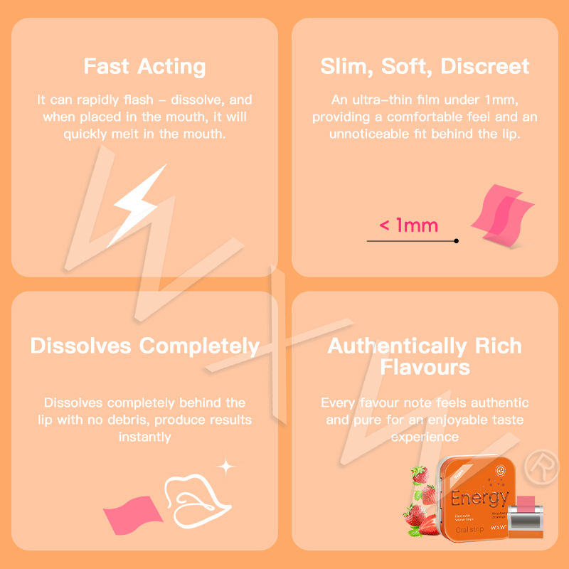 Bandelettes Orales Dissolvantes de Qualité Supérieure Personnalisées pour l'Énergie et le Soutien Immunitaire – Complément Énergétique en Film Oral