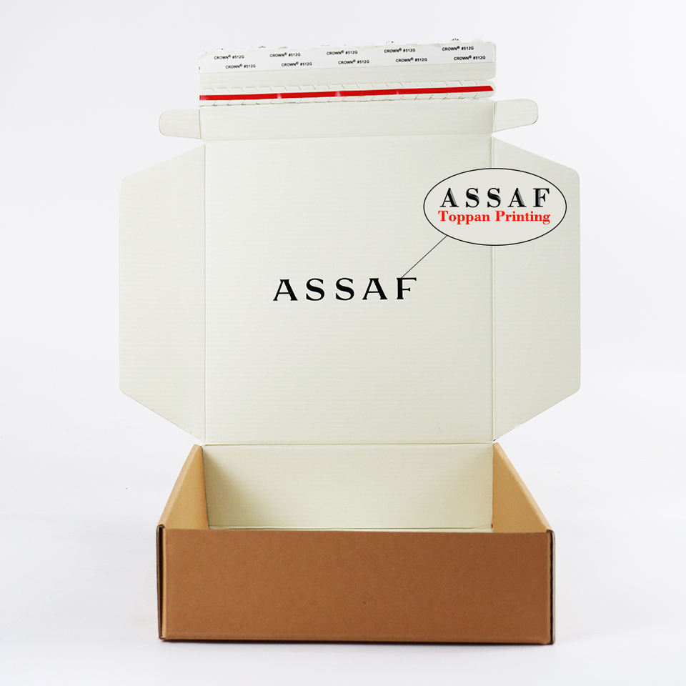 Boîtes d'expédition postales en carton ondulé avec fermeture éclair, impression personnalisée Toppan, auto-adhésives, avec bandes de déchirure