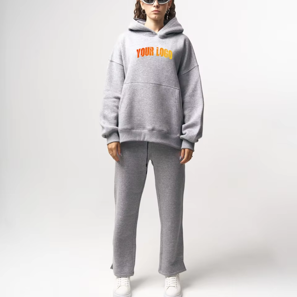 Ensemble de survêtement personnalisé 2 pièces pour femme, couleur unie, veste décontractée à capuche, pull à manches longues, ensemble deux pièces