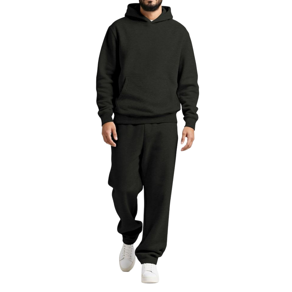 Ensemble survêtement décontracté 2 pièces pour homme personnalisé, polyester/coton de haute qualité, sweat-shirt à capuche surdimensionné, pantalon de survêtement, lavage à l'acide, uni