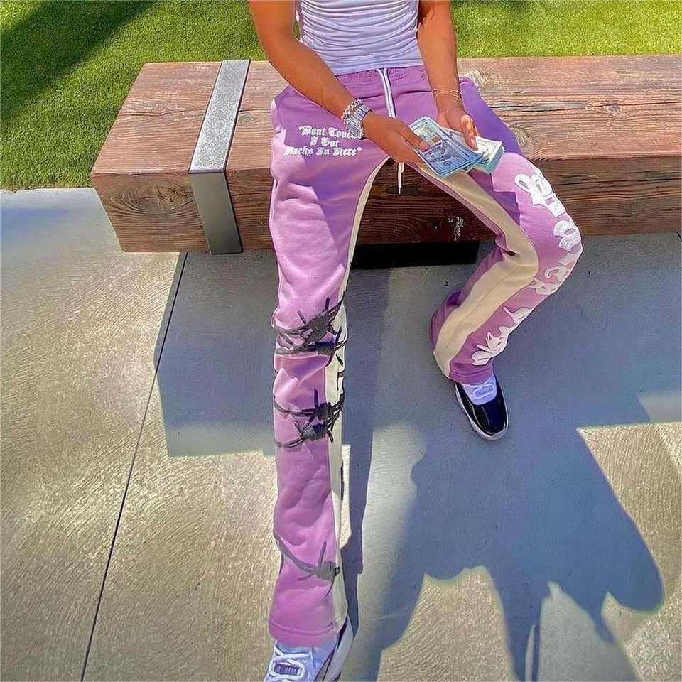 Pantalon de survêtement évasé personnalisé Pantalon de survêtement lourd 100% coton pour hommes Pantalon avec impression bouffante Pantalon pour hommes