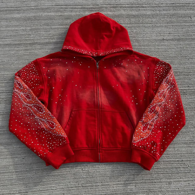 Ensemble survêtement personnalisé de haute qualité pour homme, pantalon de survêtement évasé et sweat à capuche en coton, ensemble de survêtement zippé avec sweat à capuche orné de strass