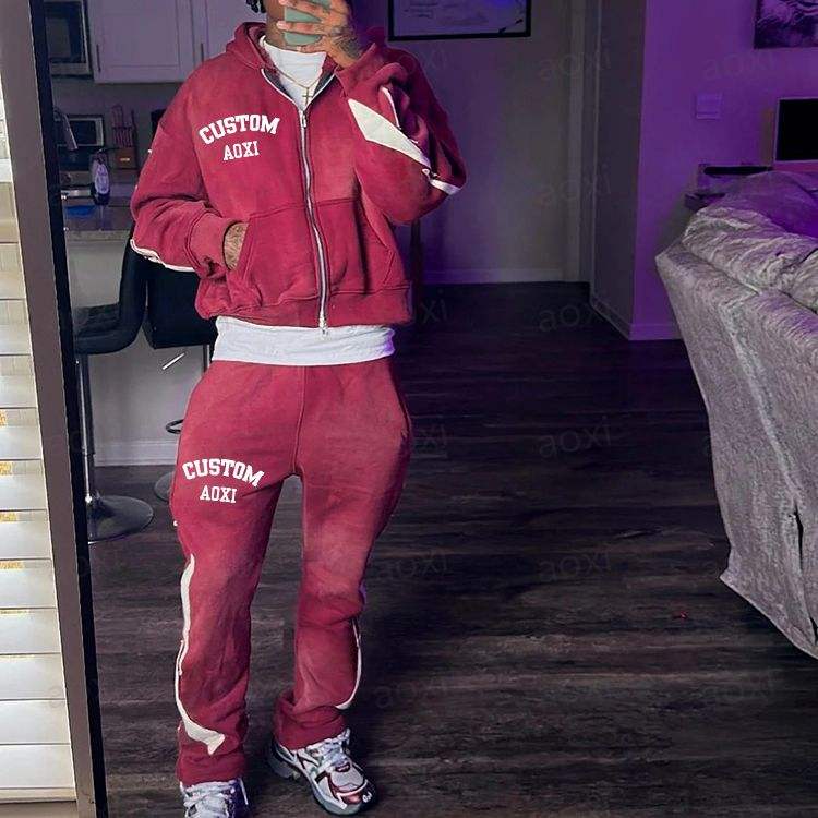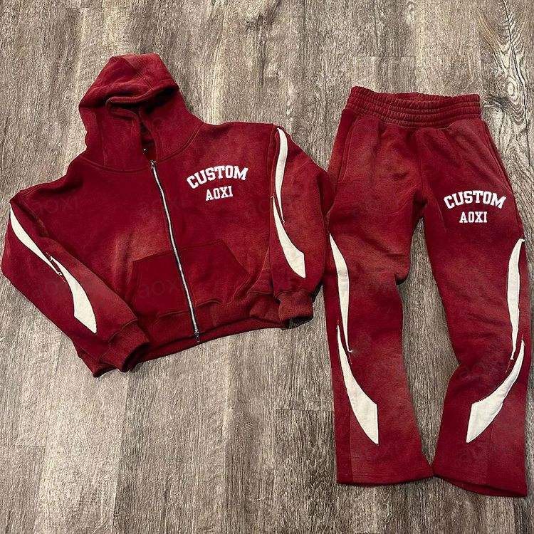 Survêtement personnalisé survêtements à rayures latérales 100% coton à capuche hommes joggers costume pantalon de survêtement évasé et ensemble de sweat à capuche