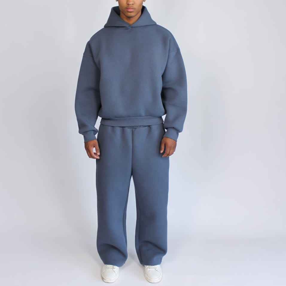 Survêtement personnalisé en denim délavé avec strass, streetwear surdimensionné, sweat-shirt court ample, ensemble 2 pièces, sweat-shirt à capuche lourd