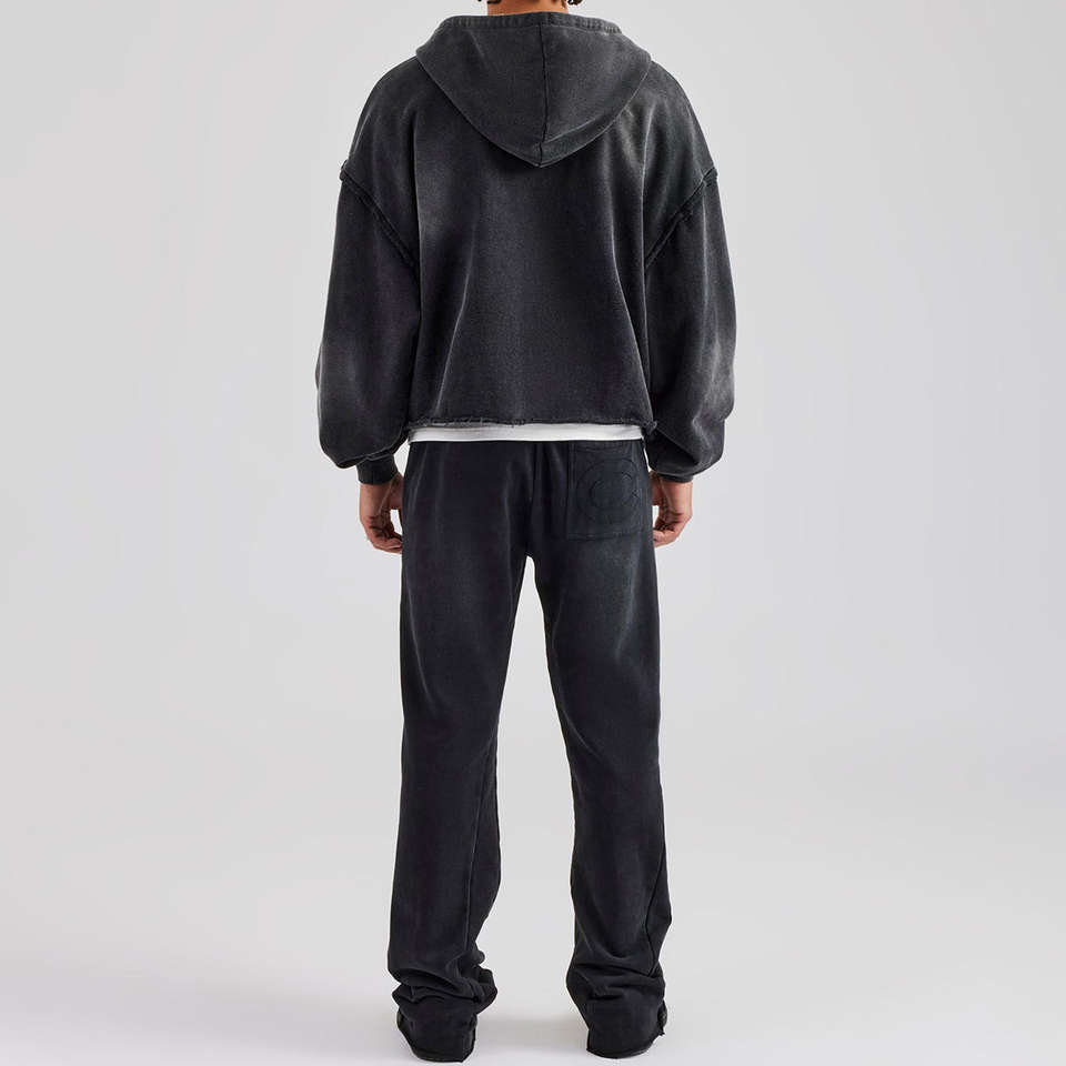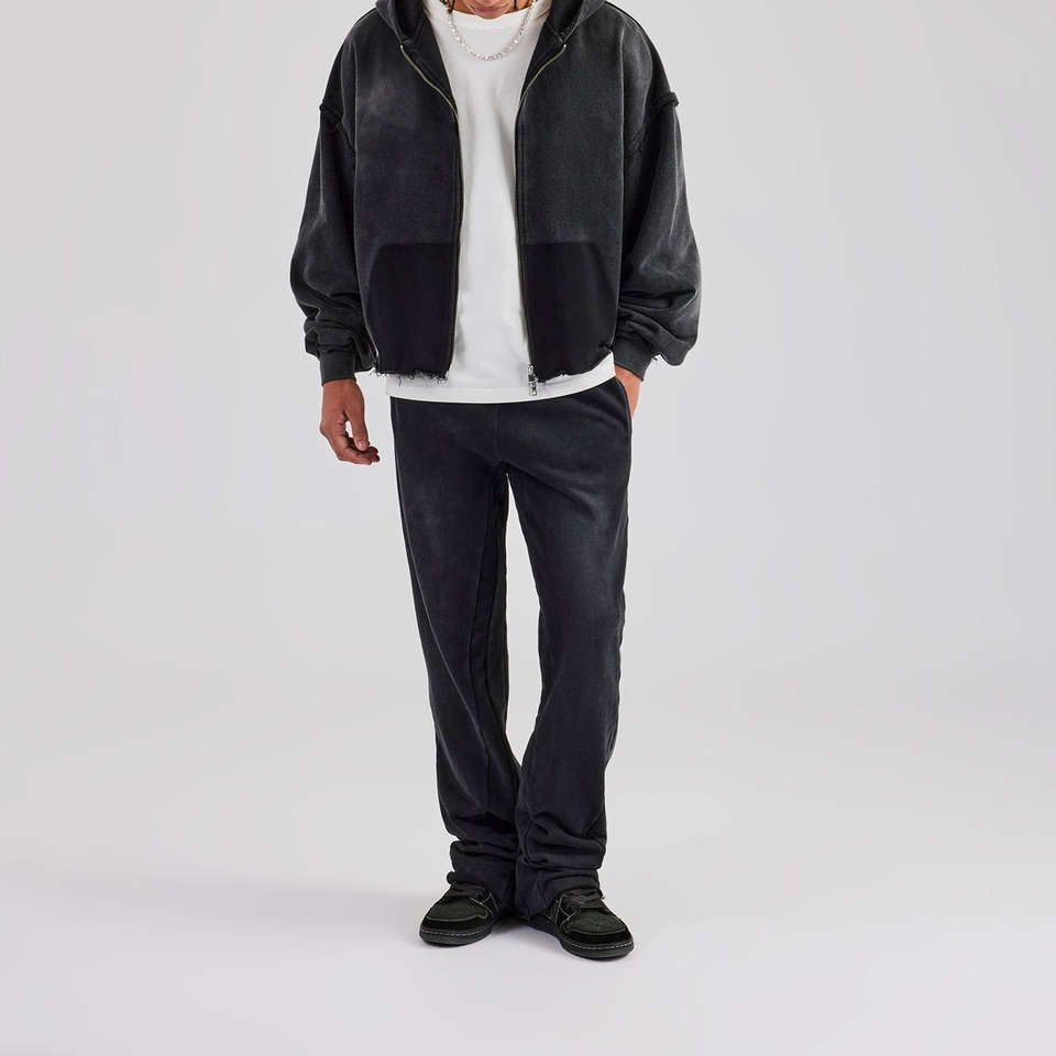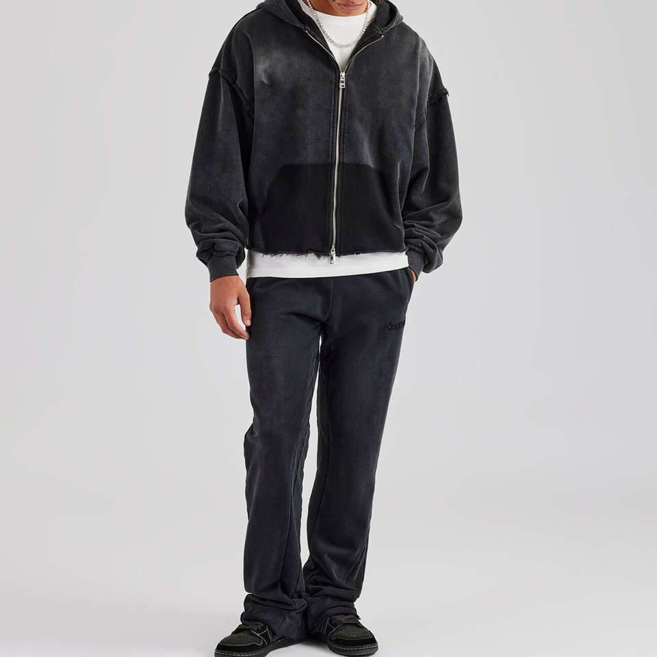 Survêtements personnalisés pour hommes, streetwear, 100% coton, effet délavé au soleil, ensemble sweat à capuche zippé et pantalon de survêtement pour hommes
