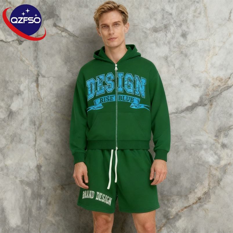 Survêtements personnalisés pour hommes Sweat à capuche à double fermeture éclair et ensemble court en coton éponge française Ensemble deux pièces pour hommes Sweats à capuche et ensembles de jogging