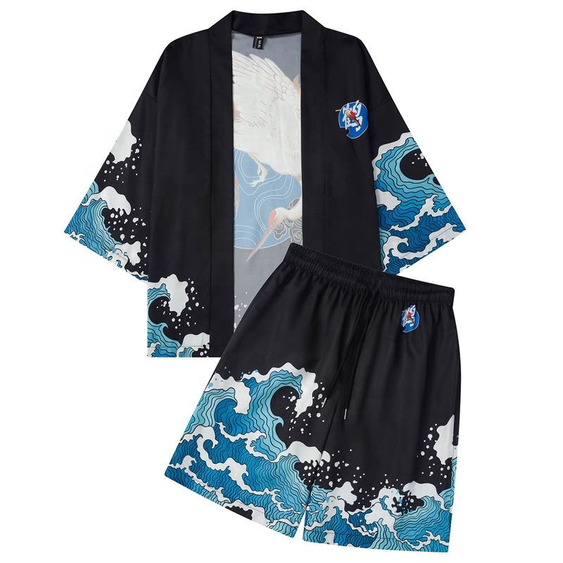 Manteau traditionnel japonais motif vague pour homme, vêtement de Festival, Vintage