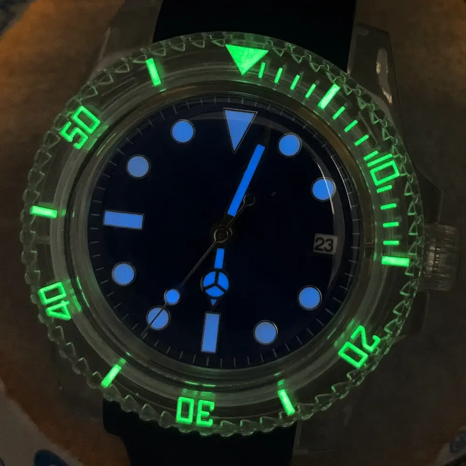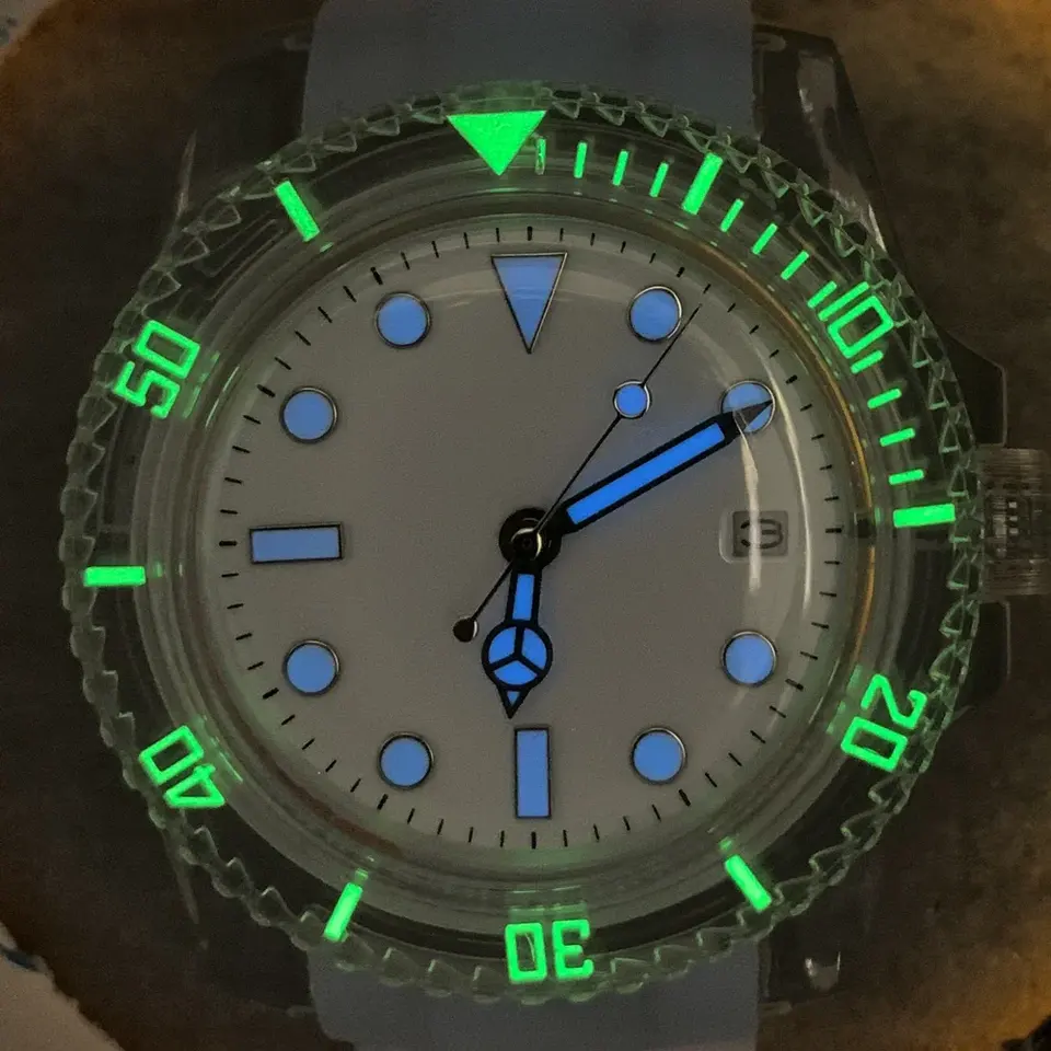 Montre automatique transparente lumineuse personnalisée avec bracelet en silicone coloré, montre-bracelet de sport étanche 3ATM pour boîtier en acrylique de 40 mm