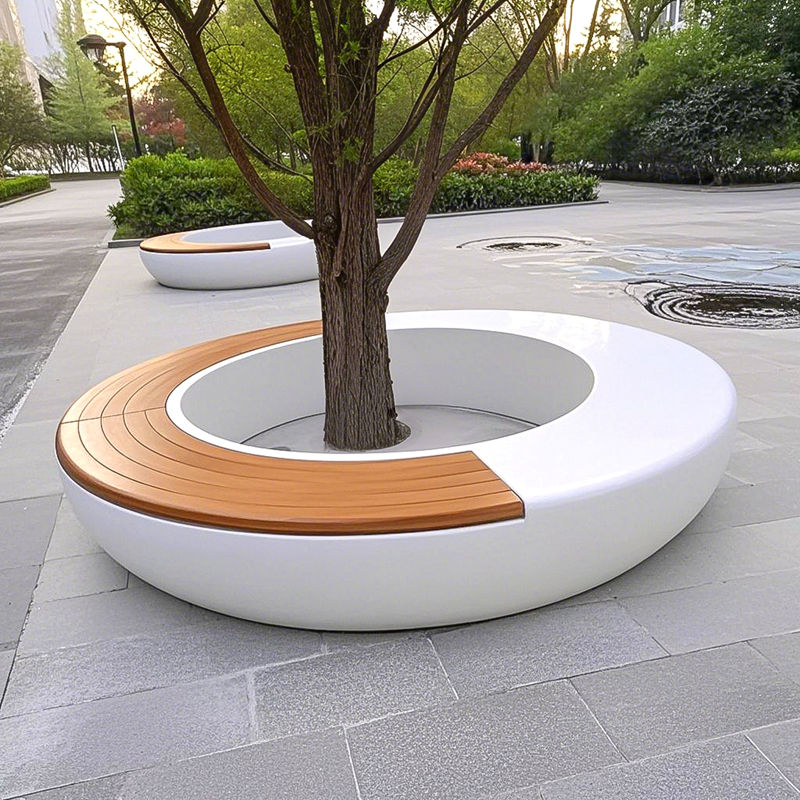 Chaise plantoir personnalisée en terrazzo, banc paysager lumineux en UHPC GRC, chaise pour arbre en bassin pour centre commercial et espaces publics extérieurs