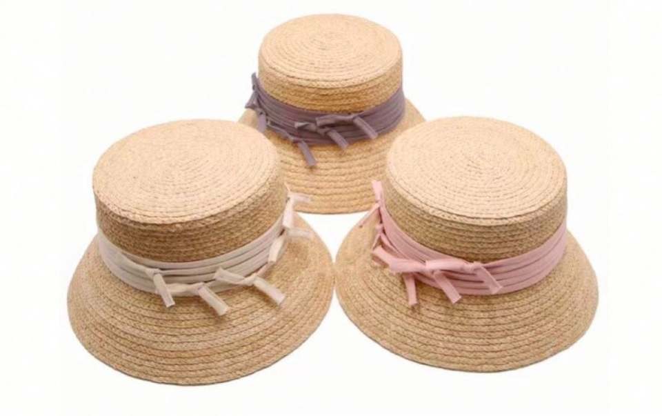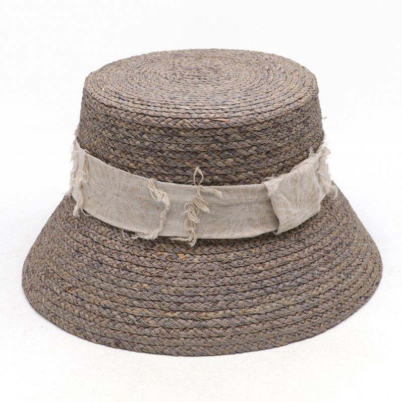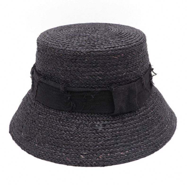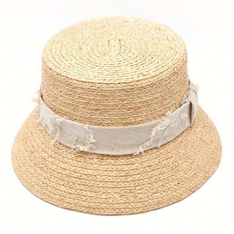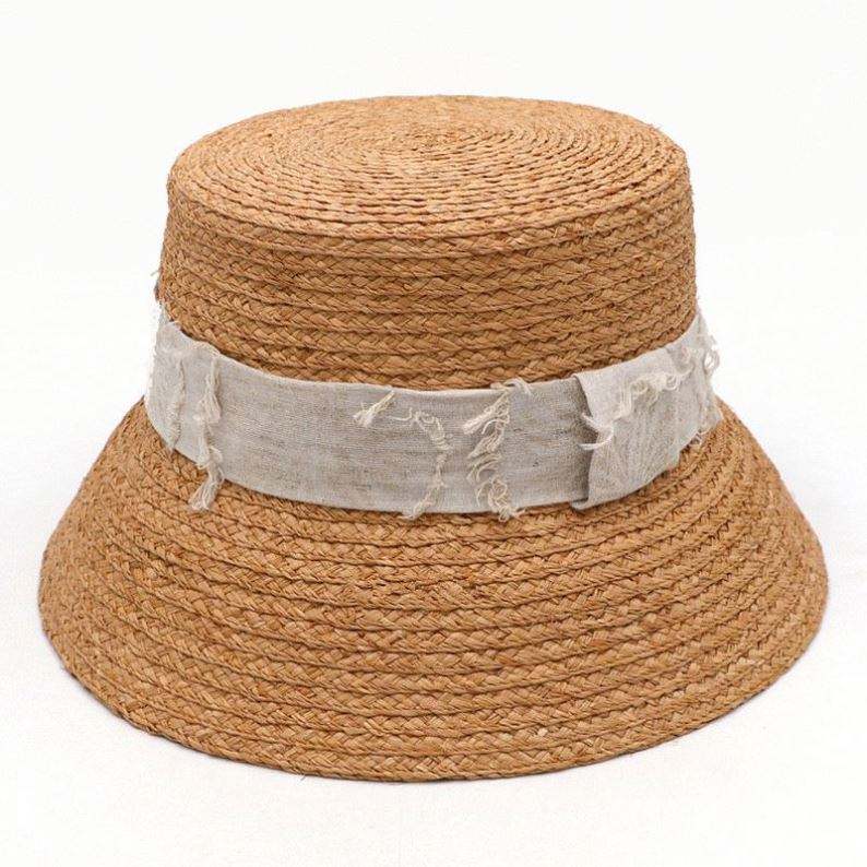 Chapeau de soleil tendance personnalisé en raphia naturel, forme bob avec ruban effiloché, pour femmes, protection solaire estivale