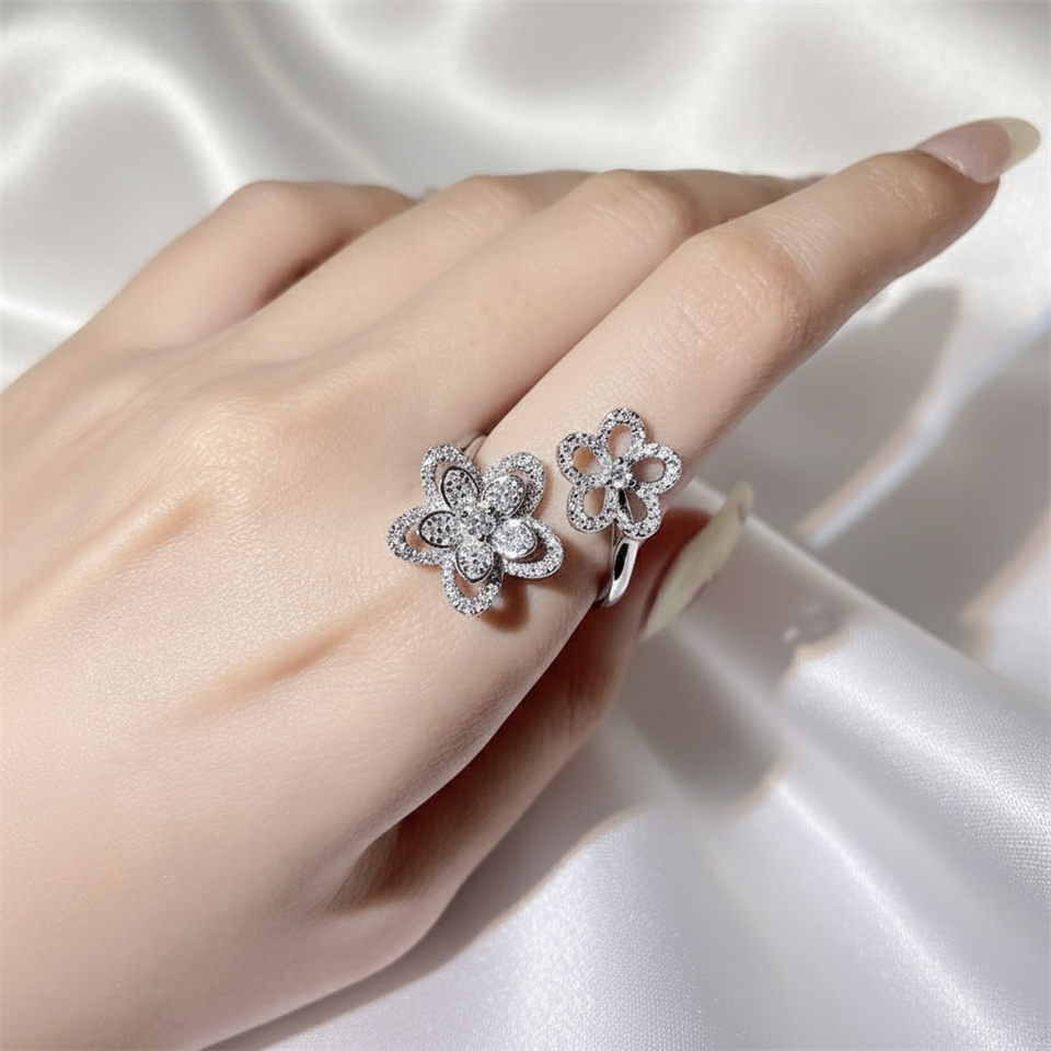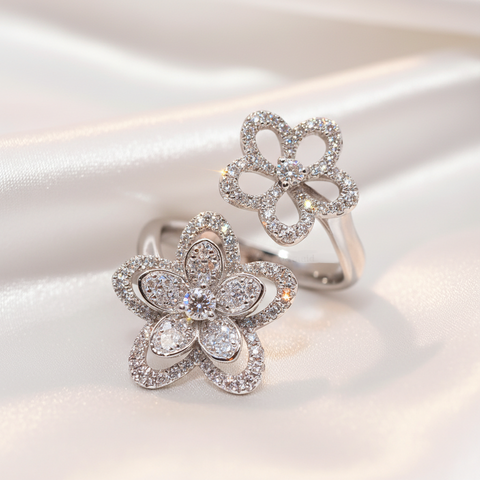 Bagues de fiançailles personnalisées tendance en argent sterling 925 avec moissanite VVS, motif fleur ouverte, pour femme, idéales pour mariage, fête ou anniversaire