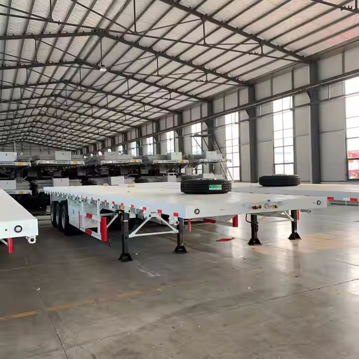 Remorques de camion personnalisées 2-4 essieux, semi-remorque en acier de 40-45 pieds avec pneus 12R22.5, conteneur de transport à plateau plat de 40 pieds