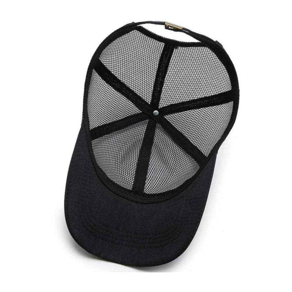 Chapeau de camionneur en coton noir réglable personnalisable à sept panneaux Design Logo Print Mesh Fabric Casual Sport Style pour vêtements de plage