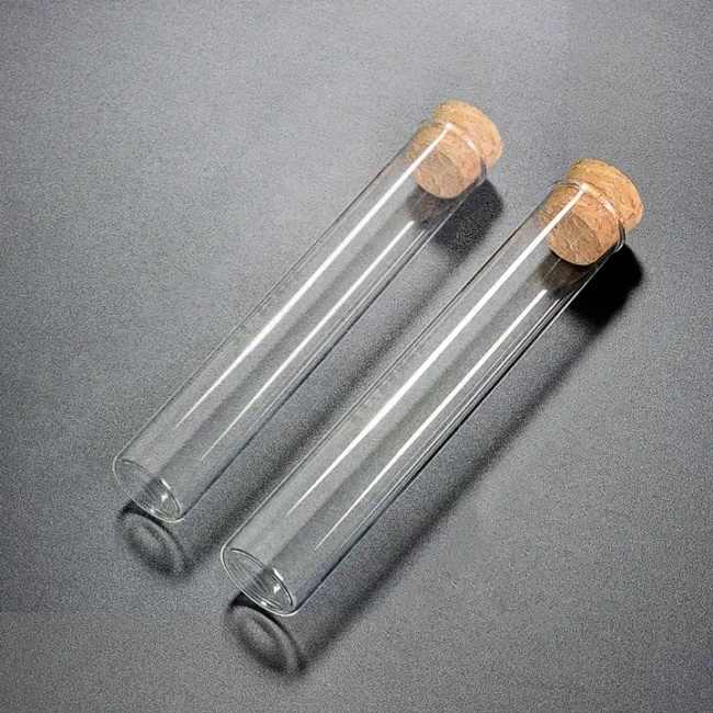 Tube personnalisé pré-emballé, tube roulé de 118 mm, tube en verre transparent avec bouchon en liège