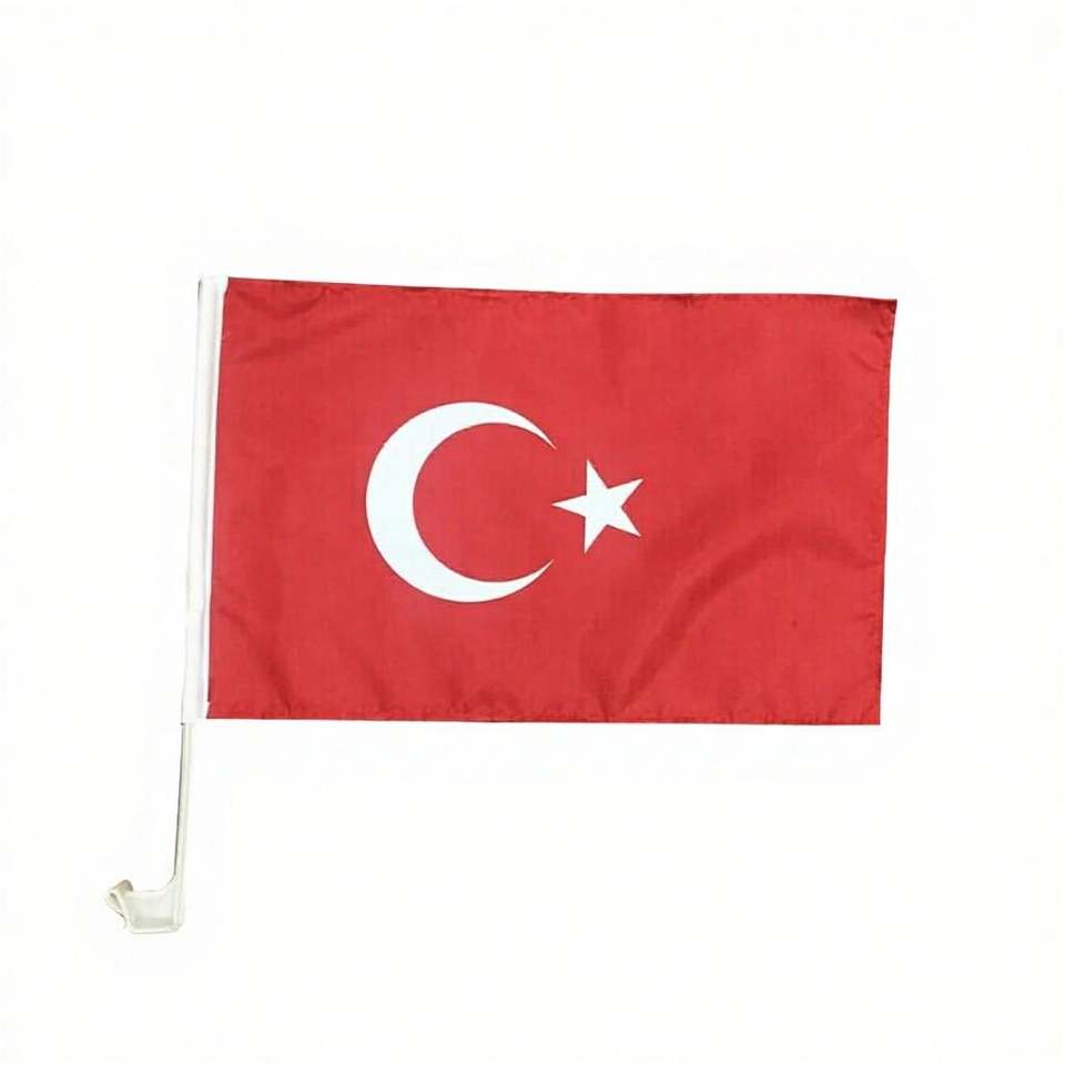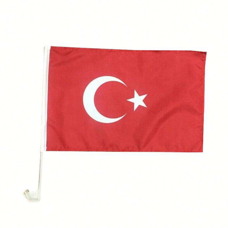 Drapeau de voiture personnalisé pour la Turquie avec mât en acrylique, imprimé numériquement, imperméable, en polyester écologique, logo personnalisé
